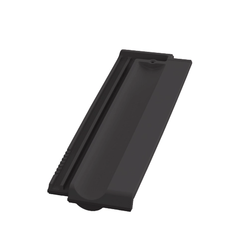 Pieza con la que se puede comenzar y terminar el lado izquierdo o derecho alternando hiladas de cubierta; ocupa la mitad del espacio de una teja TECHNICA-10. Es imprescindible para poder instalar la cubierta a junta discontinua (a tresbolillo).